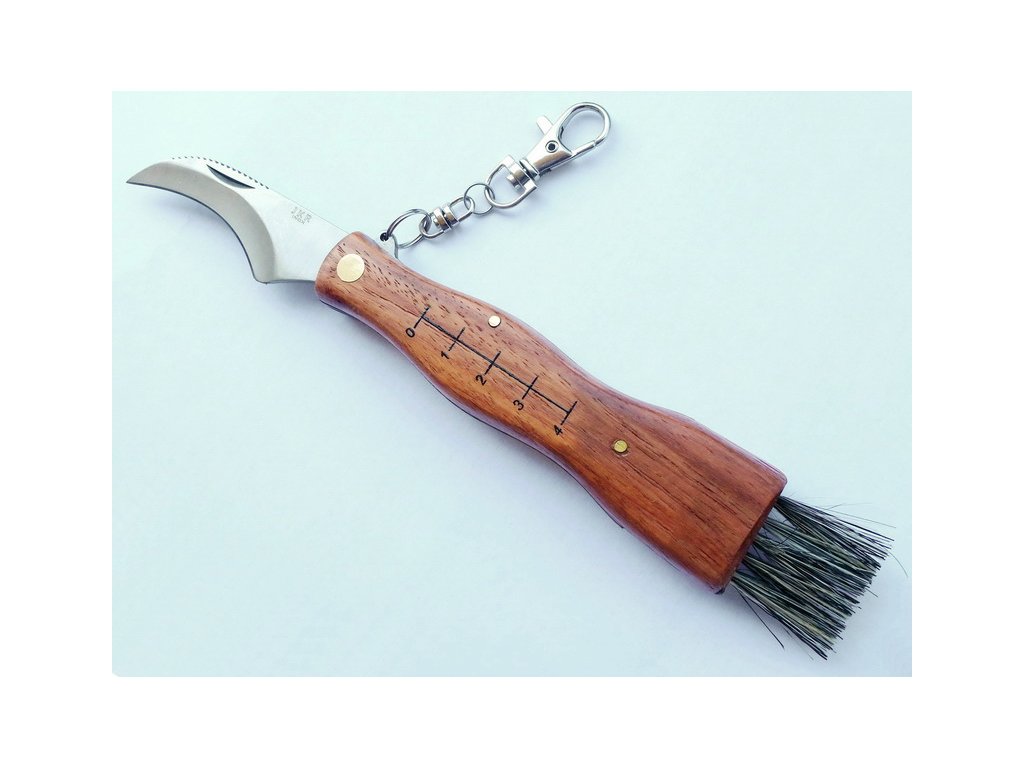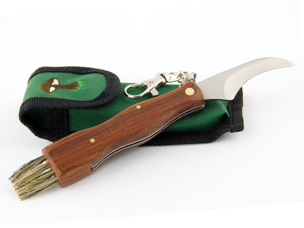 Jednoduchý hubársky nôž so 7cm dlhou čepeľou. drevenou rúčkou a praktickou kefkou na očistenie húb. Nôž dodávame s nylonovým puzdrom zelenej farby, ktoré sa dá jednoducho uchytiť na opasok.