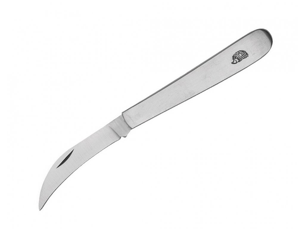 Jednoduchý zatvárací nôž. Čepeľ aj rukoväť noža vyrobená z nerezovej ocele. Tvarom je nožík predurčený na práce v záhrade, zbieranie bylín alebo húb.