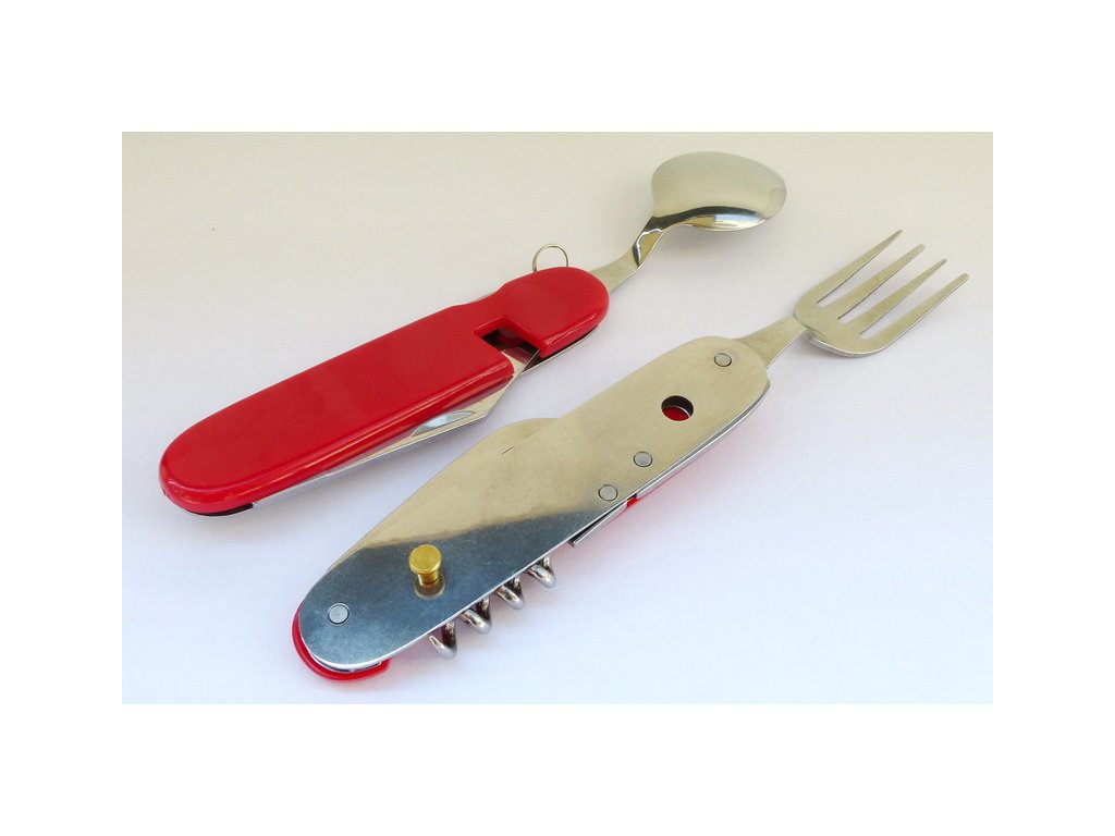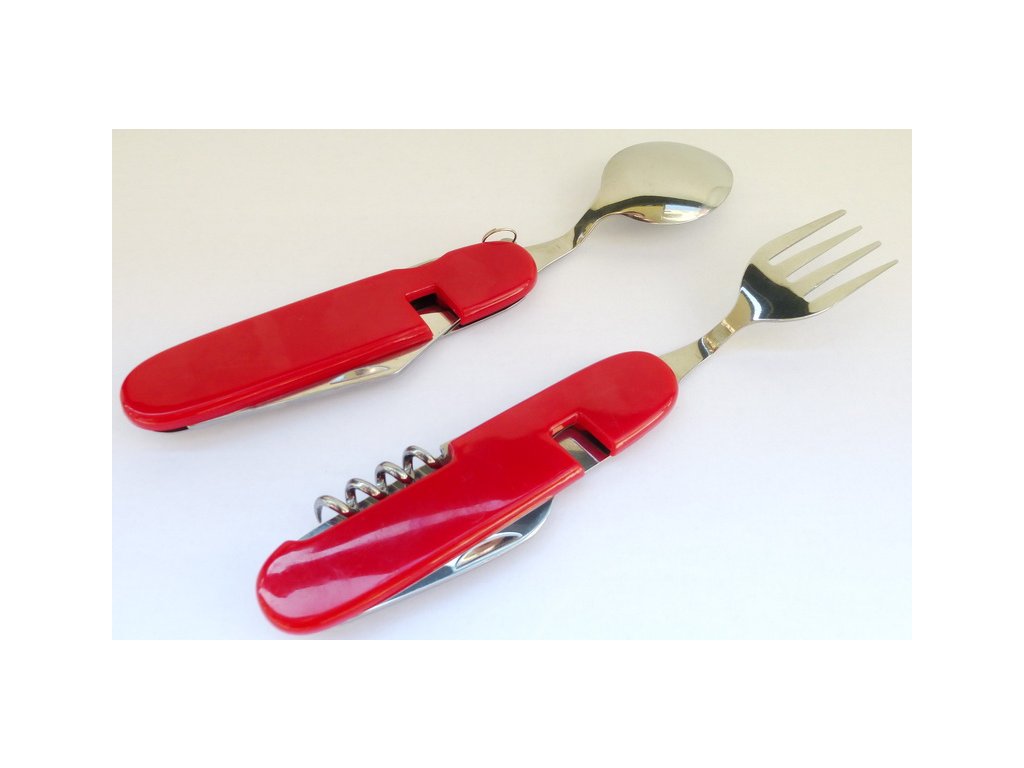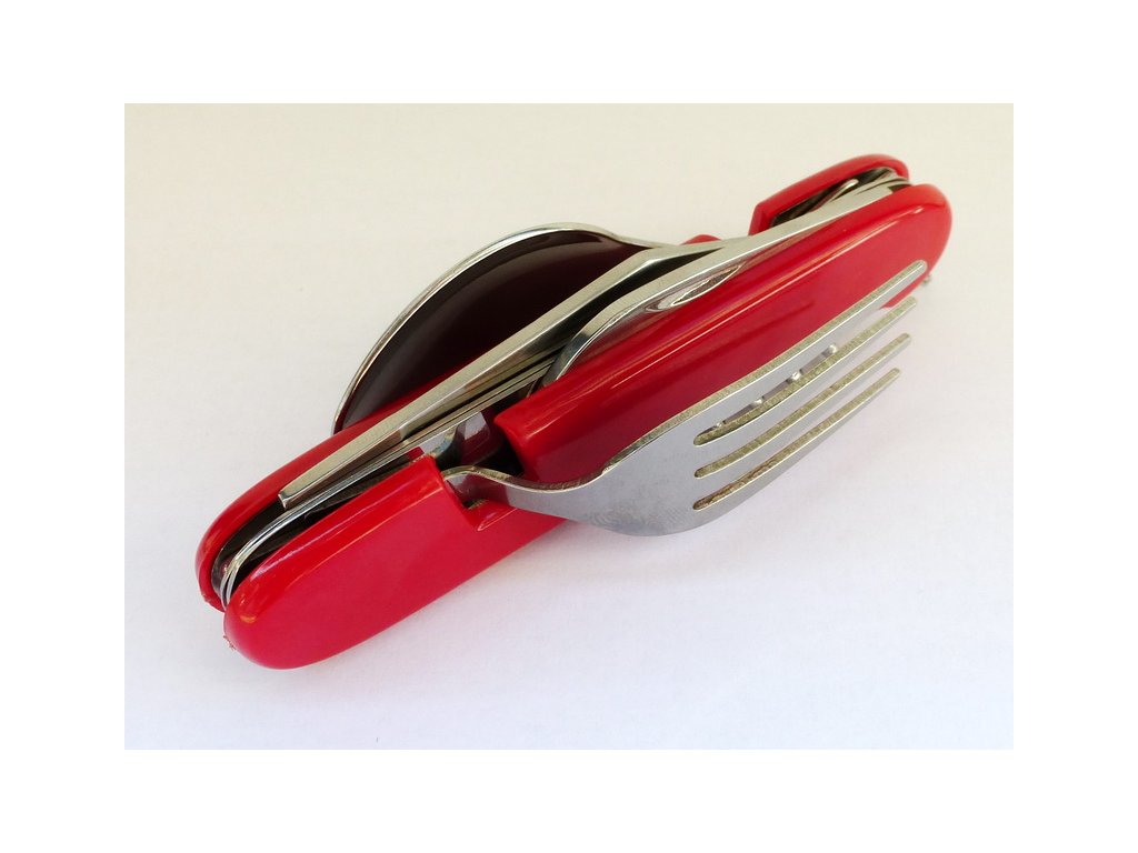 Príbor skladací kombinovaný - červený