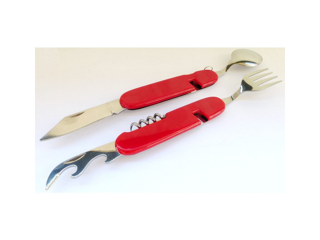 Praktický rozložiteľný príbor vhodný do prirody, na cestovanie, kemping, do auta a pod. Príbor obsahuje lyžicu, vidličku, nôž, otvárak na konzervy a vývrtku. Je kompaktný, ľahký a jednoduchý na údržbu.